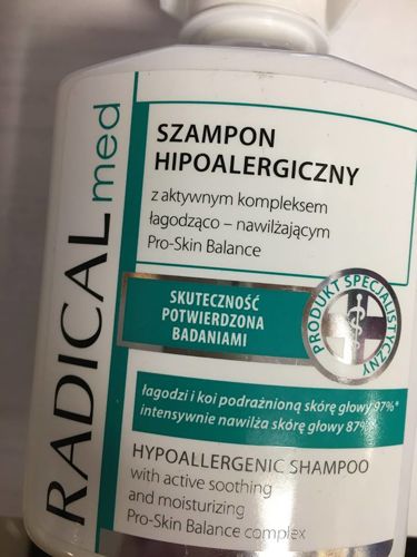 Dermatological, very mild Radical Med shampoo for the most sensitive scalp, especially with psoriatic problems and eczema. It does not contain fragrance, salt (sodium chloride) and sulfates: SLES, SLS.