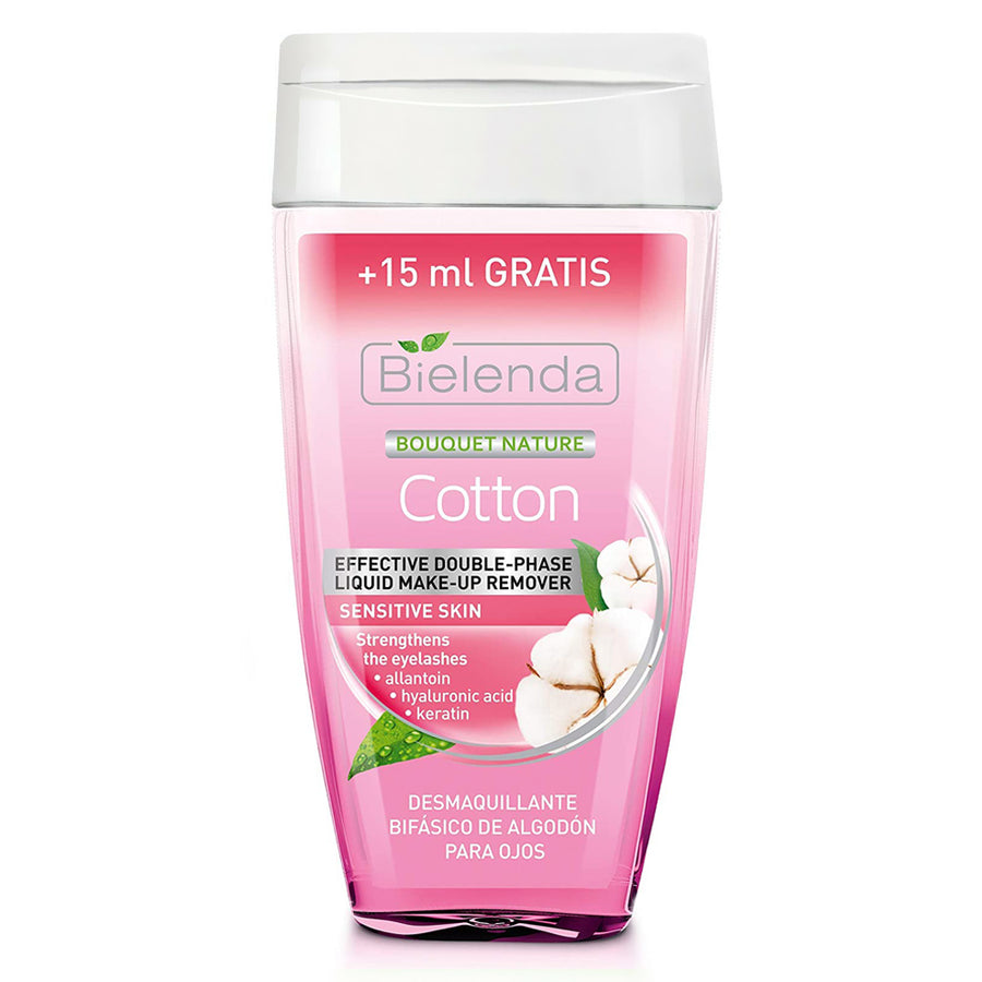 Cotton Gentle Double Phase Liquid Make Up Remover by Bielenda is a gentle solution specially formulated to effectively eliminate even waterproof make-up with its unique 2-phase formula