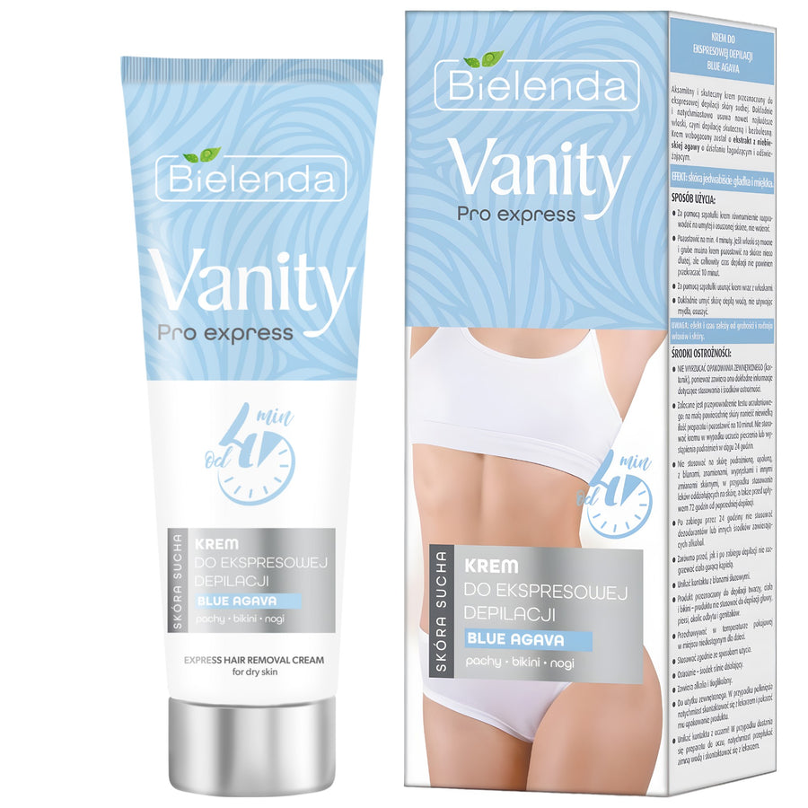 Bielenda Vanity Pro Express Cream for Express Depilation Dry Skin Bikini Armpits Legs with Blue Agava 75ml