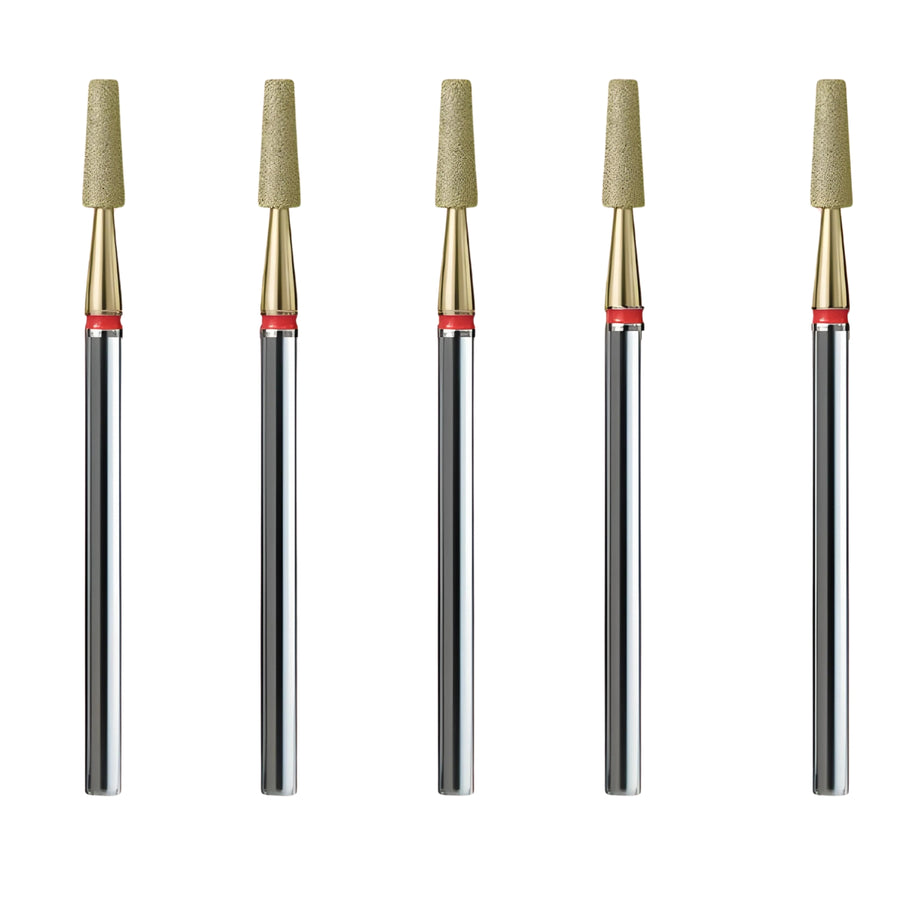 IQ Nails Pack of 5 Diamond Drills feature a delicate, truncated cone shape with a red stripe that provides exceptional control in various nail care operations. Engineered for both dry work and water cooling, these drills are designed for maximum precision and efficiency. Ideal for pushing back cuticles, matting the nail plate, removing epithelium, and gel correction during nail renewal.