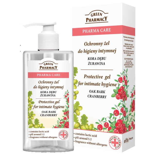 Pharma Care Protective gel for intimate hygiene. Oak bark, Cranberry. It contains proven ingredients in the care of intimate places - lactic acid and oak bark extract.