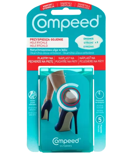 COMPEED® Plaster na pęcherze dla kobiet noszących buty na oznaczone obcasach zawiera zaawansowaną usługę hydrokoloidową, natychmiastową pomoc w przypadku błędu i obecności gojenia. Unikalne wyprofilowanie w obudowie motyla i krawędzie wylotowe specyficzne do kształtu, a tym samym najwyższa dyskirecja. Plastry Compeed® przyspieszają gojenie, są stosowane do stosowania na wszystkich pęcherzach, które występowały z powodu noszenia obuwia na wysokim obcasie.